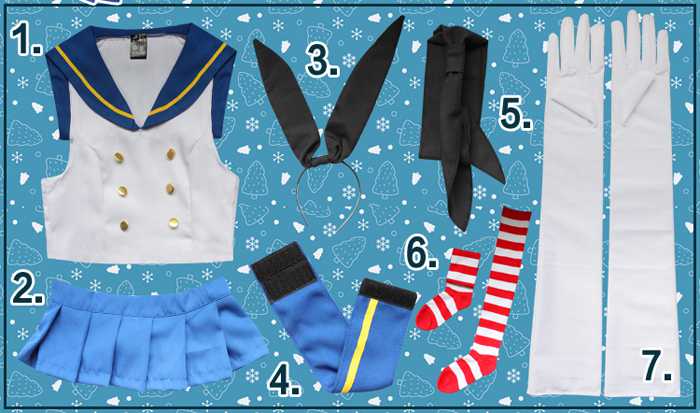 セット内容:トップス+ミニスカート+ネクタイ+うさ耳+手袋+Tパンツ+袖カバー+ソックス(8点)