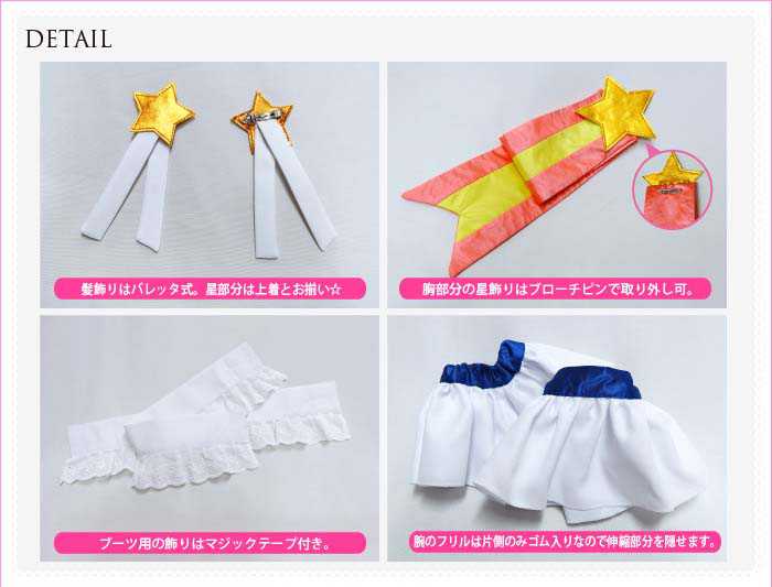 セット内容:上着、スカート、胸の飾り、腕飾り、蝶結び、髪飾り